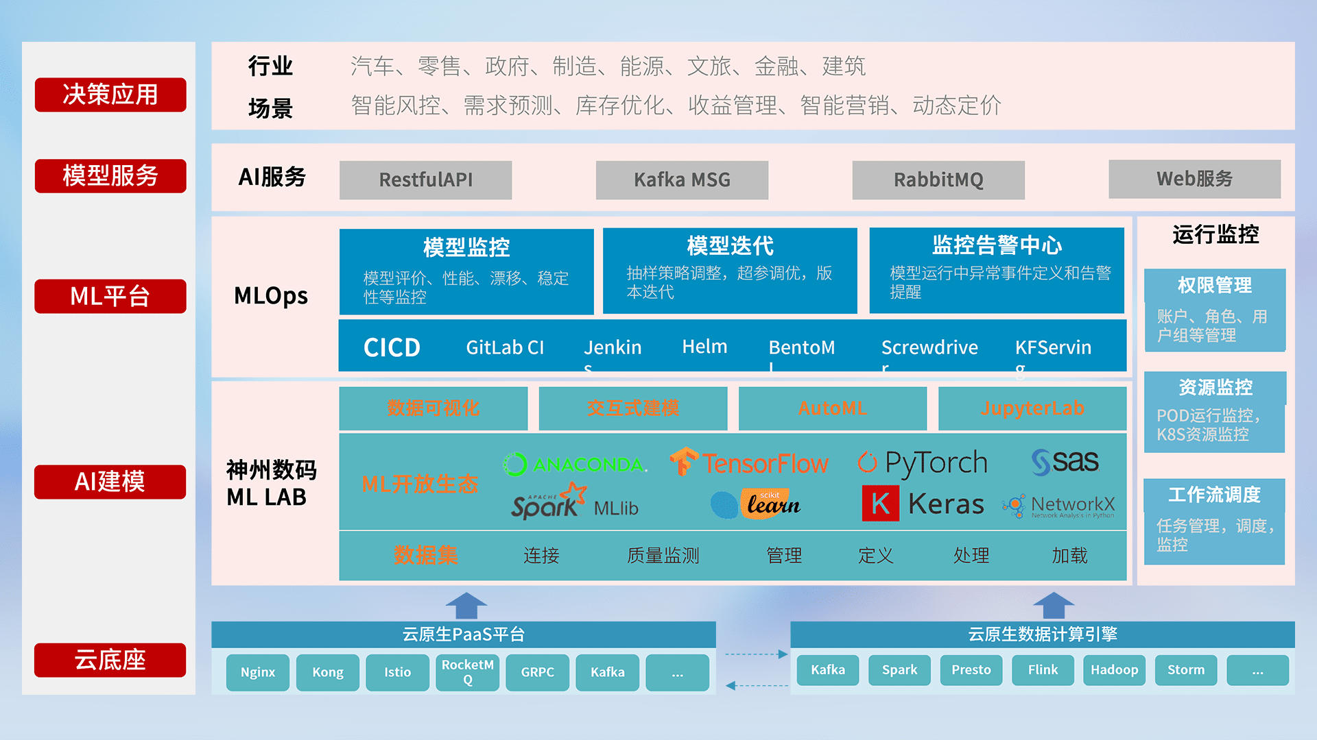 数据+模型双引擎驱动,,,,面向智能服务场景,,快速灵活利用AI技术,,支持业务决策,,,,助力企业智能化转型破局。。。。